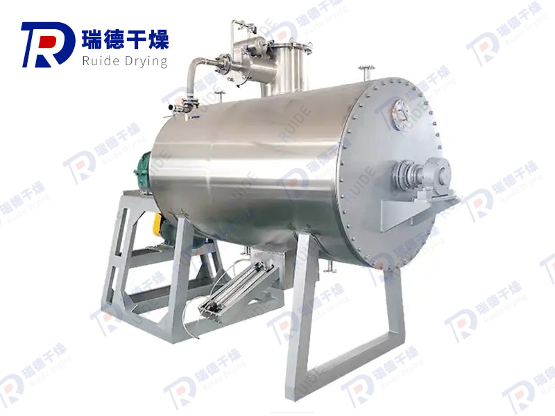 This machine is a novel horizontal intermittent vacuum drying equipment. Wet materials are evaporated through conduction, and a scraper stirrer is equipped to continuously remove the materials on the hot surface and move them inside the container to form a circulating flow. After the water evaporates, it is pumped out by a vacuum pump.