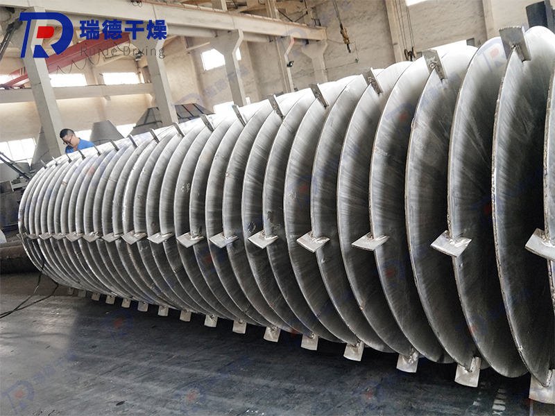 Wedge shaped hollow blades are densely arranged on the hollow shaft, and the heat medium flows through the blades through the hollow shaft. The heat transfer area within a unit effective volume is large, and the temperature of the heat medium ranges from -40 ℃ to 320 ℃. It can be steam or liquid, such as hot water, thermal oil, etc. Indirect conduction heating does not carry away heat with air, and the heat is used to heat the material. The heat loss is only the heat dissipation to the environment through the insulation layer of the device body. The wedge-shaped blade heat transfer surface has self-cleaning function. The relative motion between the material particles and the wedge-shaped surface produces a scrubbing effect, which can wash away the attached material on the wedge-shaped surface and maintain a clean heat transfer surface during operation. The shell of the blade dryer is Ω - shaped, and generally two to four hollow mixing shafts are arranged inside the shell. The shell has a sealed end cover and an upper cover to prevent material dust leakage and fully exert its function. The heat transfer medium flows through the shell jacket and hollow stirring shaft through the rotating joint. The hollow stirring shaft has different internal structures according to the type of heat medium to ensure the best heat transfer effect.