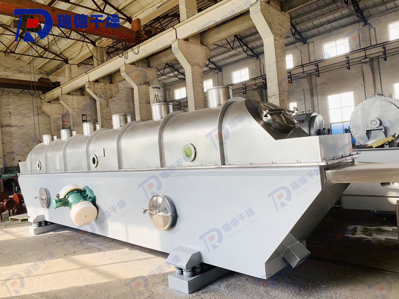 物料自進(jìn)料進(jìn)口進(jìn)入機(jī)內(nèi),在振動(dòng)力作用下,物料沿水平面流化床拋擲,向前連續(xù)運(yùn)動(dòng),熱風(fēng)向上穿過流化床同濕物料換熱后,濕空氣經(jīng)旋風(fēng)分離器除塵后由排風(fēng)1:3排出.干燥物料由排料進(jìn)口排出。